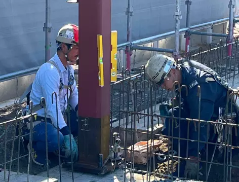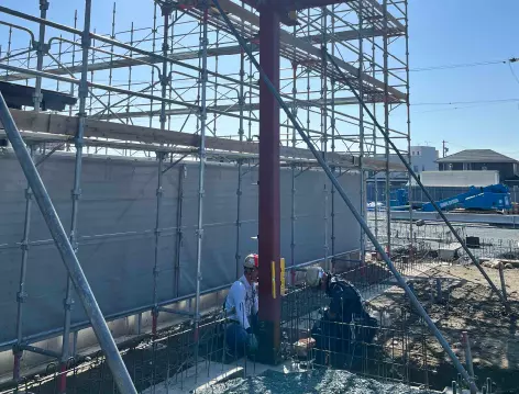 依頼した鳶さんと事前打ち合わせを元に、現場の指示に合わせて安全第一に鉄骨を建てていきます。
